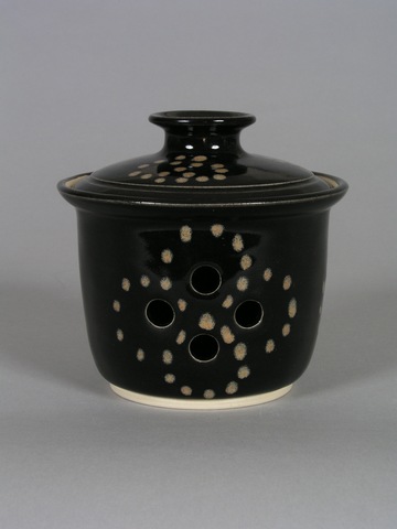This cute little lidded jar is perfect for letting that garlic breathe. It measures 4" tall and is 4" wide.